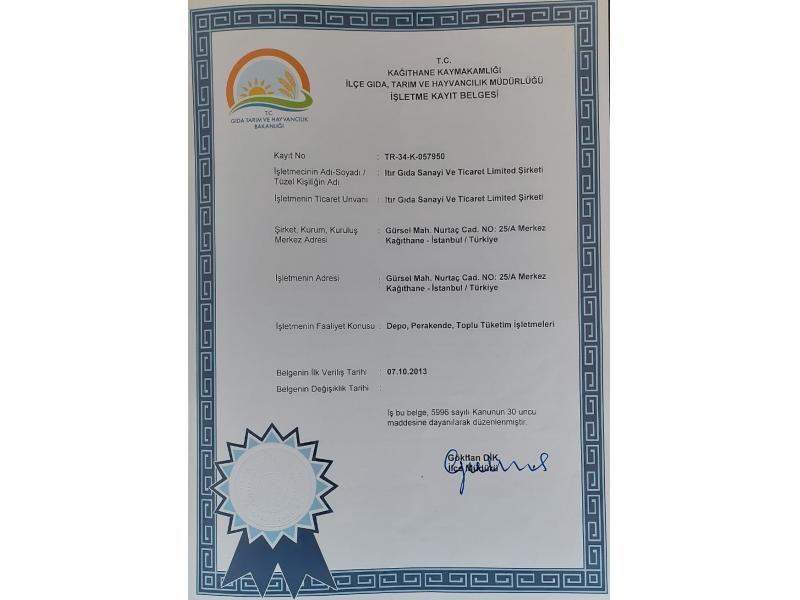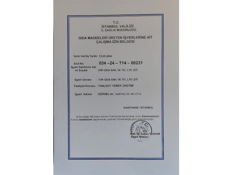 Gıda Maddeleri Üreten İş Yerlerine Ait Çalışma İzin Belgesi